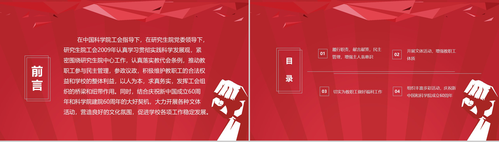 简约中科院研究生院工会年终工作总结PPT模板