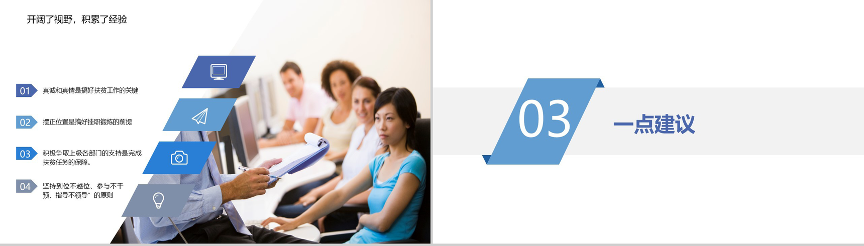首页 PPT模板 工作总结 蓝色极简商务公务员挂职锻炼工作总结PPT模板