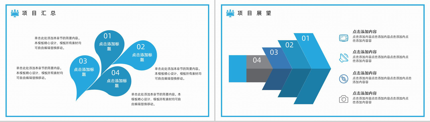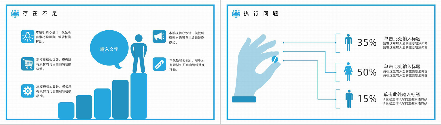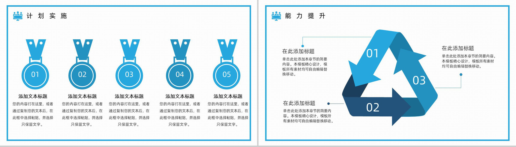 蓝色商务风2.5D设计总结汇报PPT模板