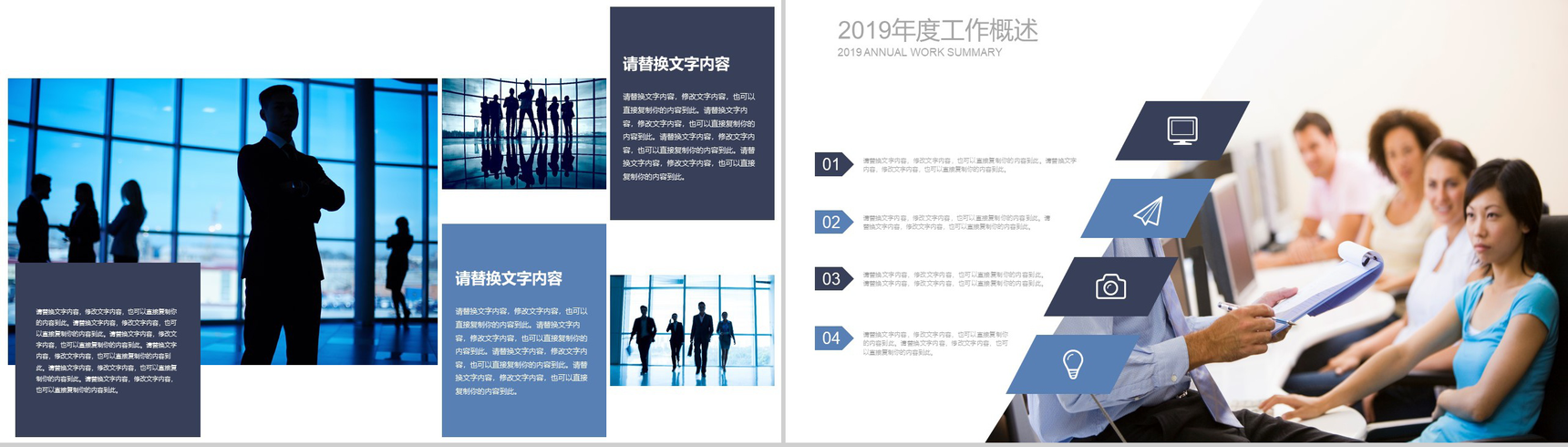 蓝紫色几何拼接职场工作总结汇报通用PPT模板