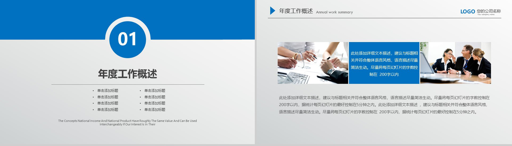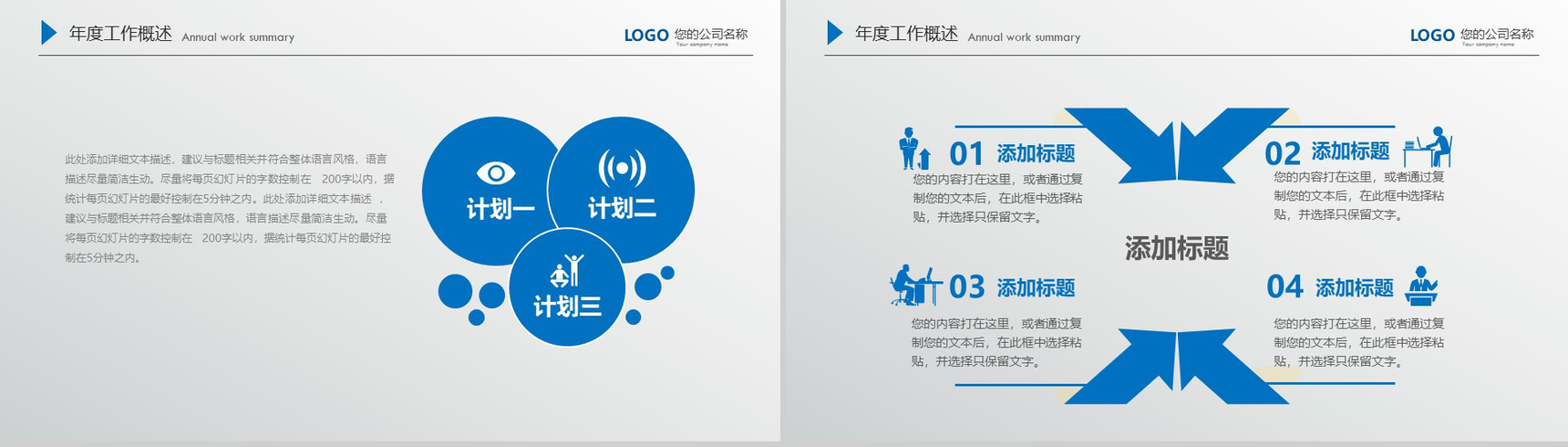 框架完整实用蓝色个人总结工作计划汇报PPT模板