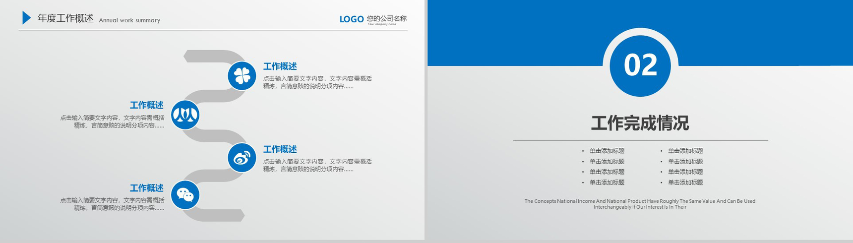 首页 PPT模板 工作总结 框架完整实用蓝色个人总结工作计划汇报PPT模板