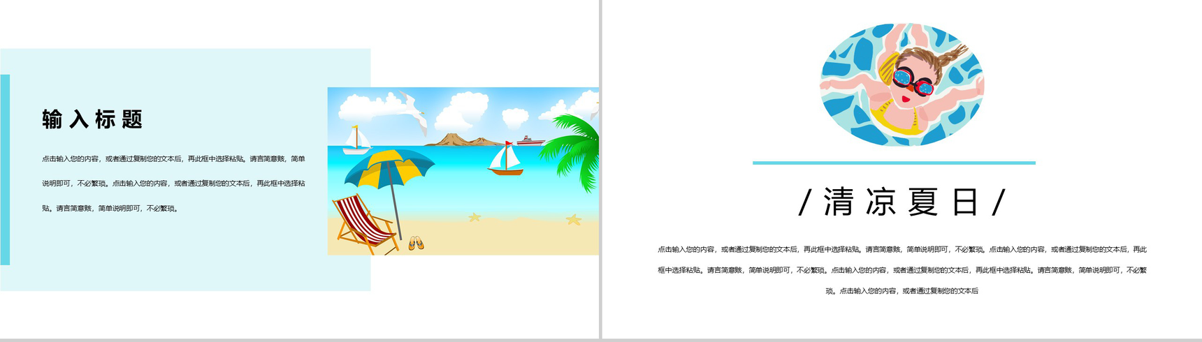 清凉夏天创意小清新工作汇报总结PPT模板