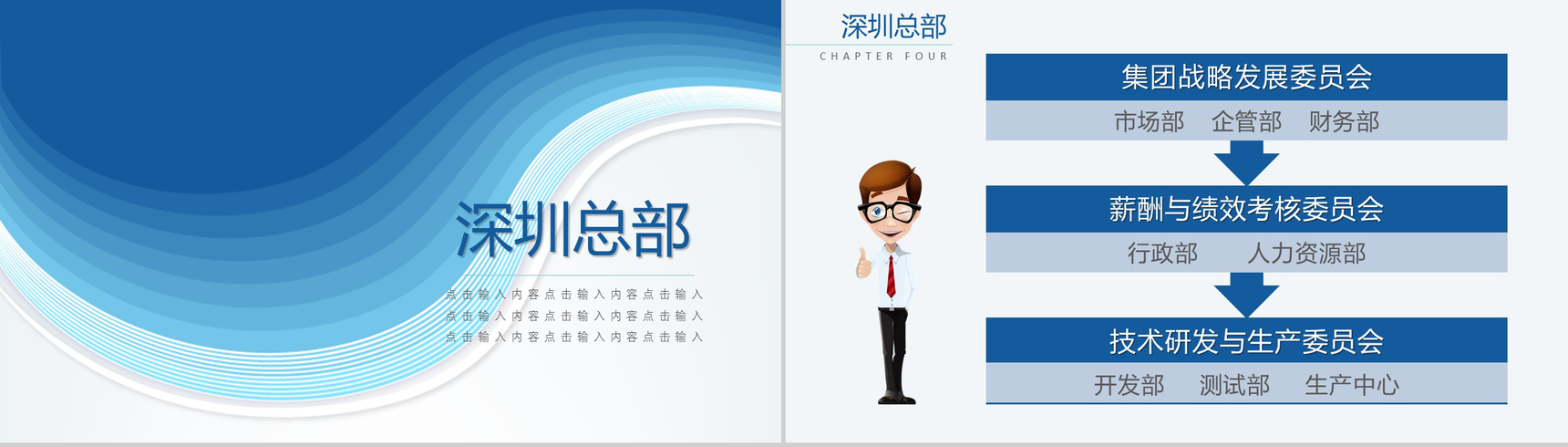 首页 PPT模板 工作总结 大气蓝色组织结构图PPT模板