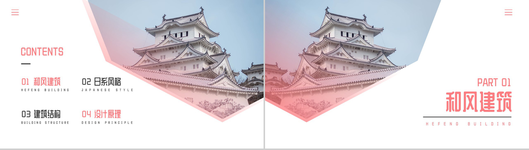 首页 PPT模板 工作总结 粉色日本宫殿和风建筑介绍PPT模板