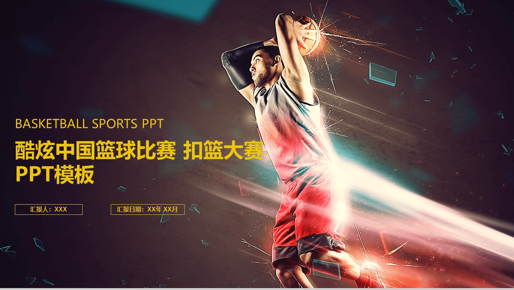 炫酷中国大气扣篮大赛篮球比赛动态PPT模板