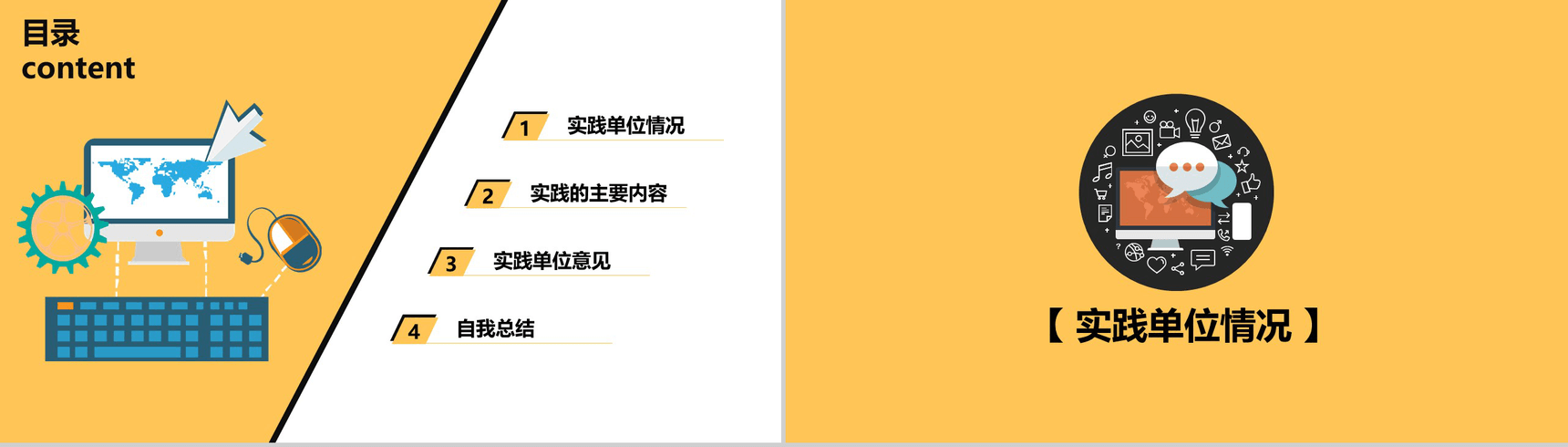 大学生社会实践报告扁平化PPT模板